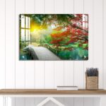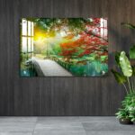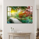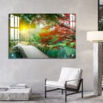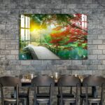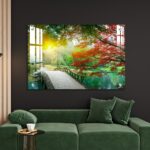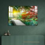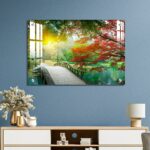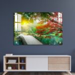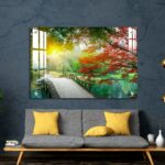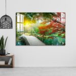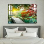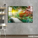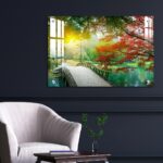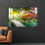 OMGs® Acrylic Wall Decor – Beautiful Maple Leaves and Small Bridge in The Chinese Garden