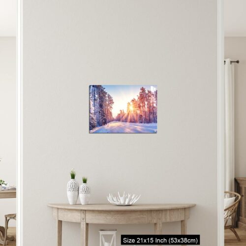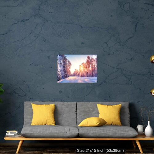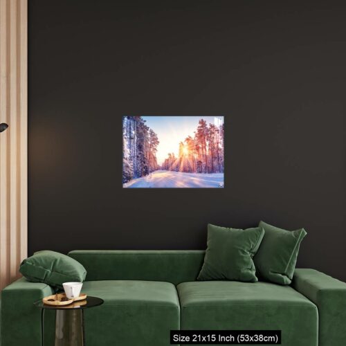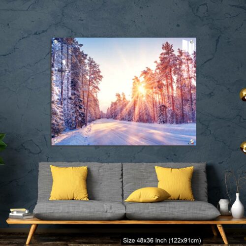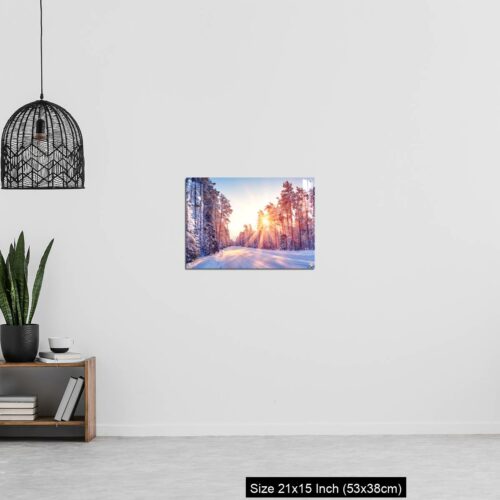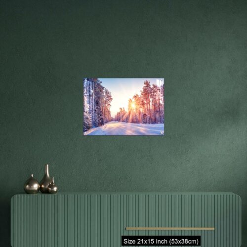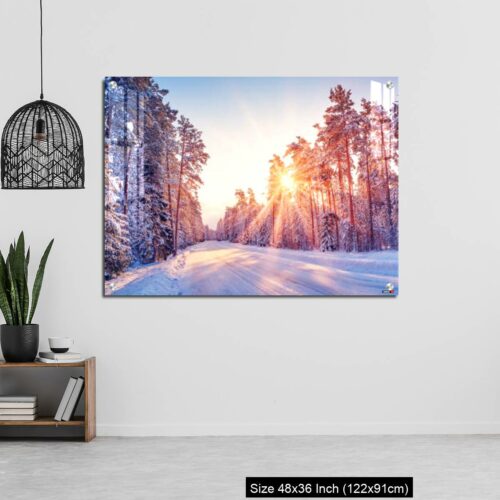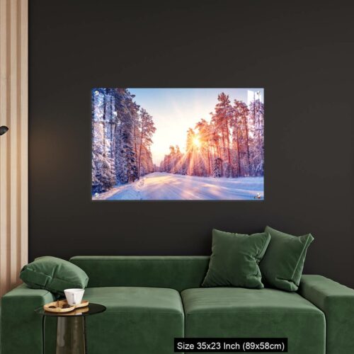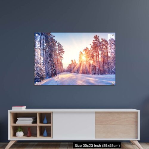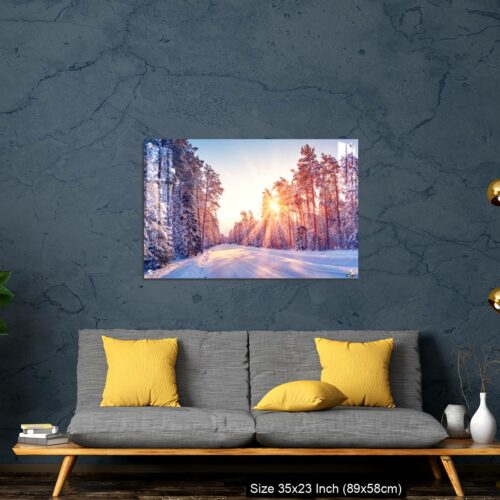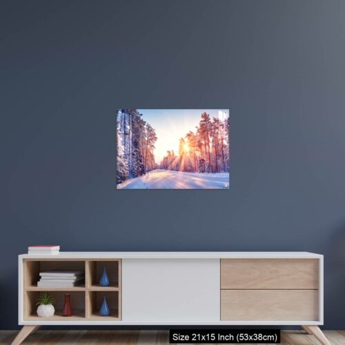 Acrylic Wall Decor – Beautiful view of the sunrise in the morning on the country snowy road.
