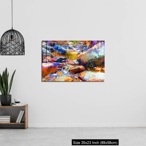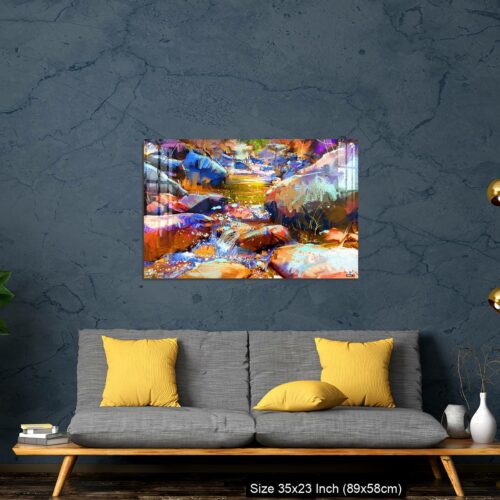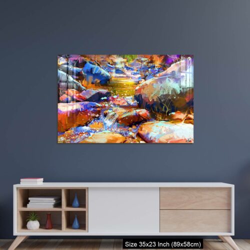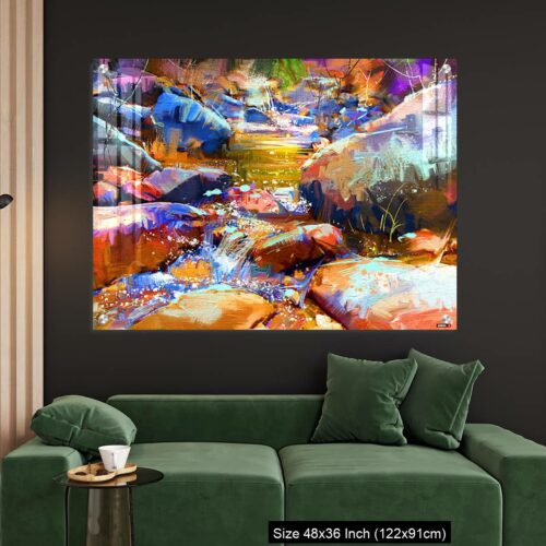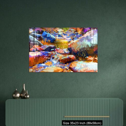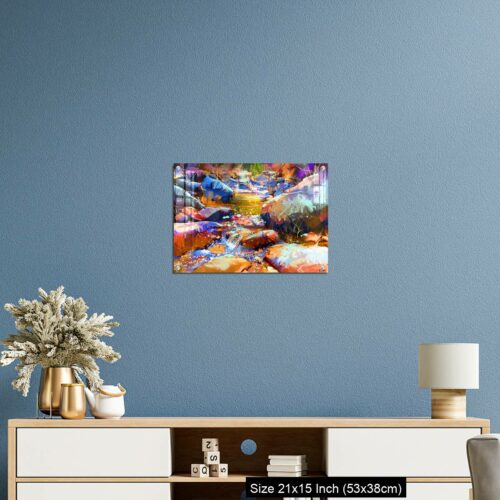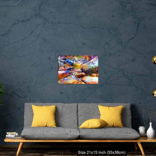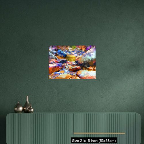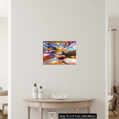 OMGs® Acrylic Wall Decor – beautiful waterfall with colorful stones in autumn forest