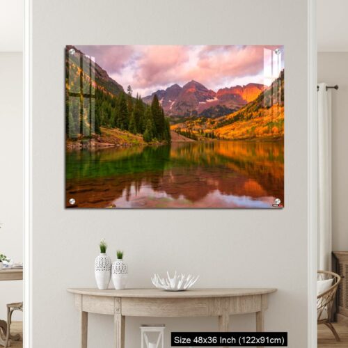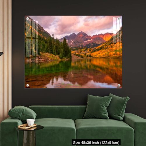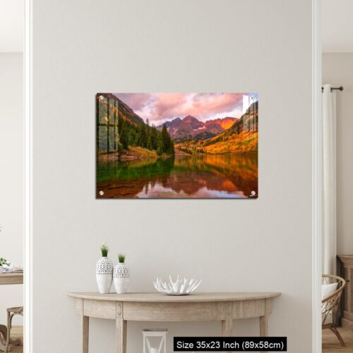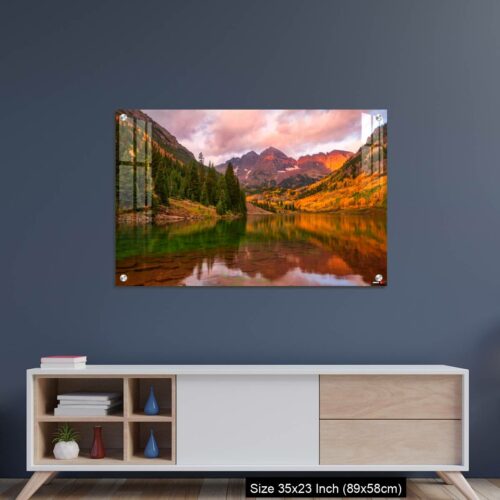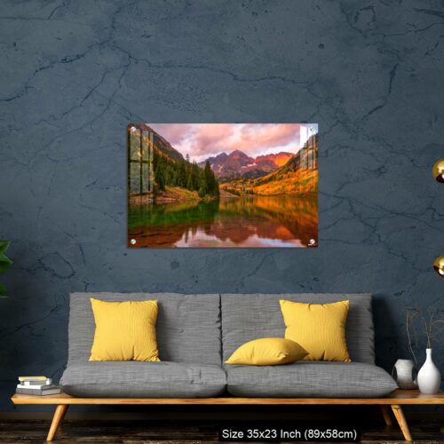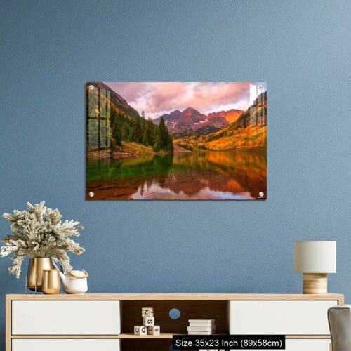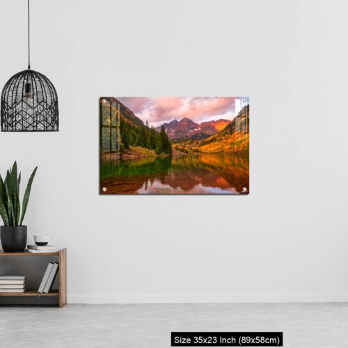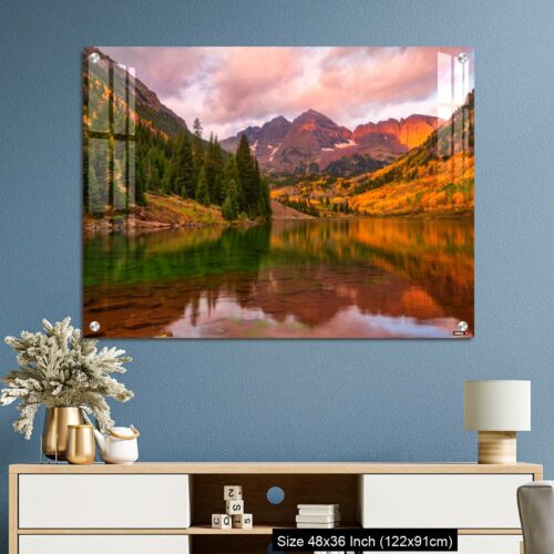 OMGs® Acrylic Wall Decor – Classic Maroon Bells Fall landscape scene