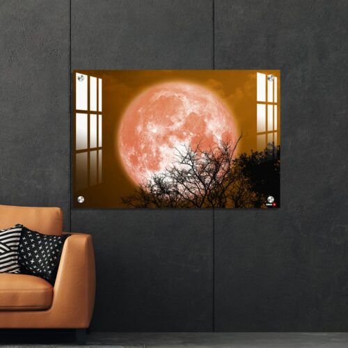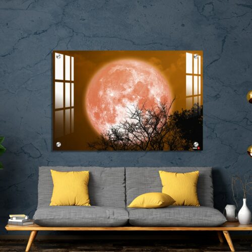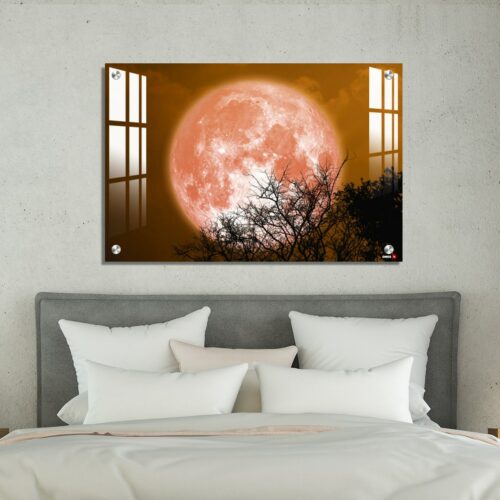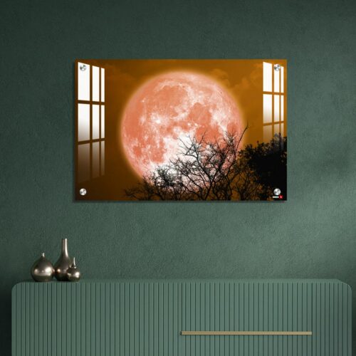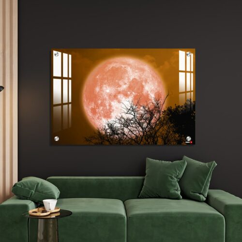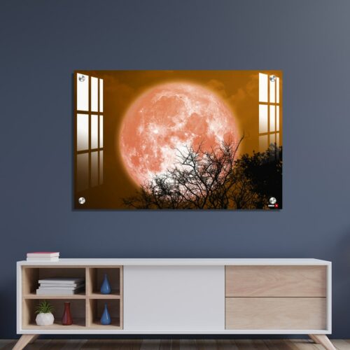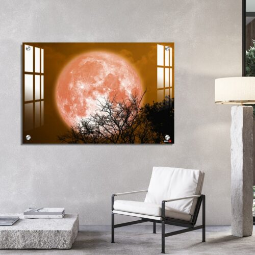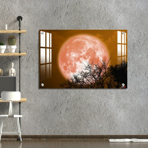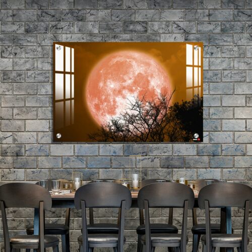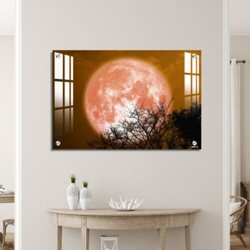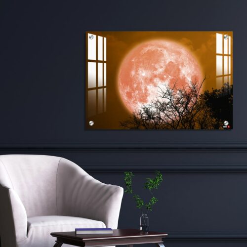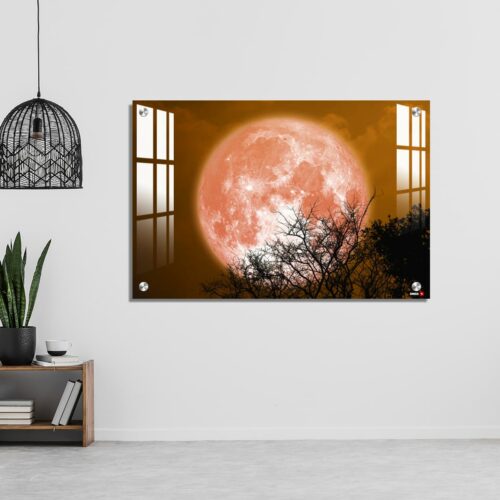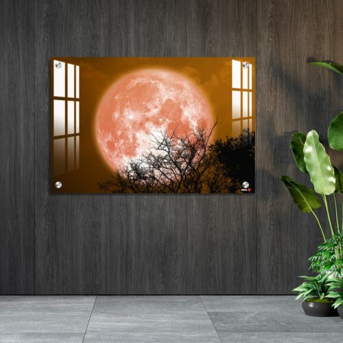 Acrylic Wall Decor – Full Sturgeon Blood Moon and Silhouette Tree in The Night Sky