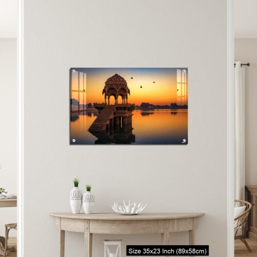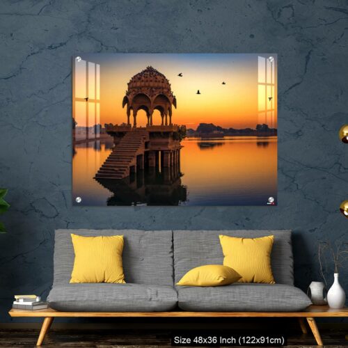 Acrylic Wall Decor – Gadisar lake at Jaisalmer Rajasthan at sunrise with ancient temples