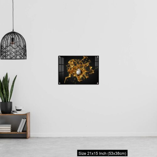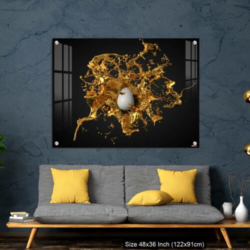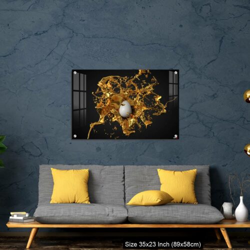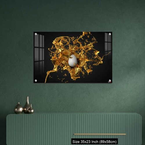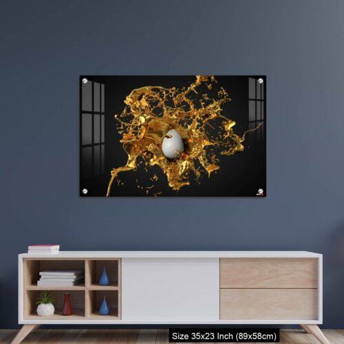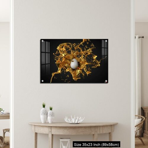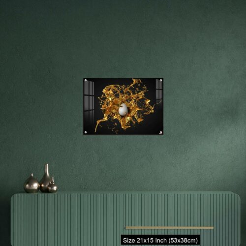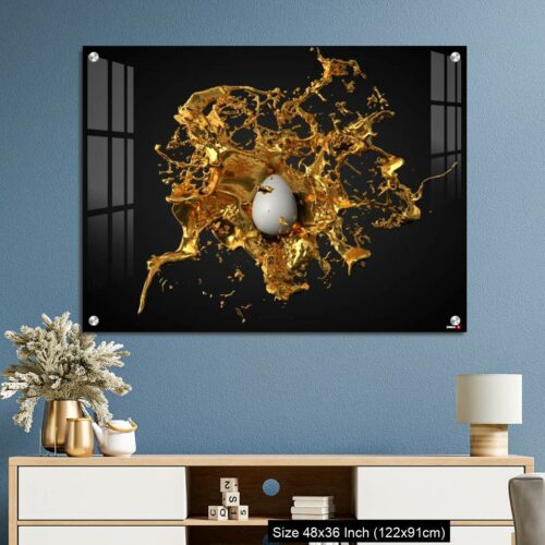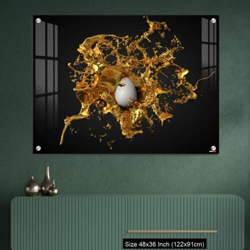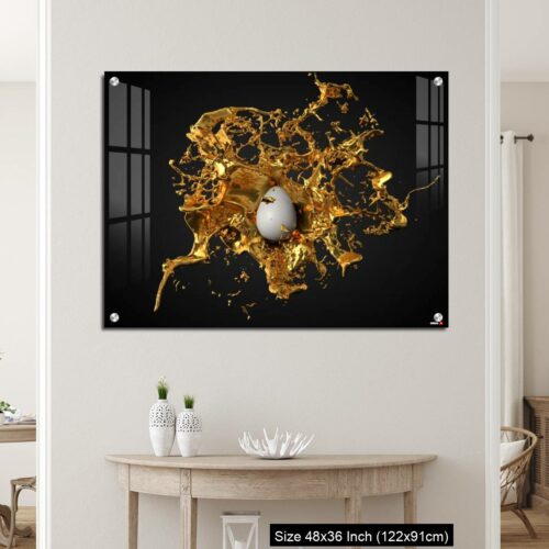Acrylic Wall Decor – golden paint splash over a white easter egg.