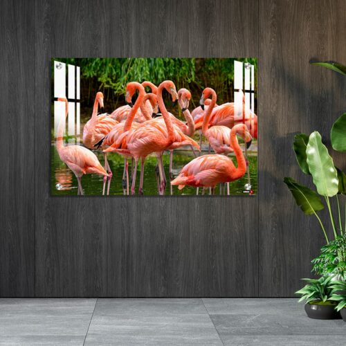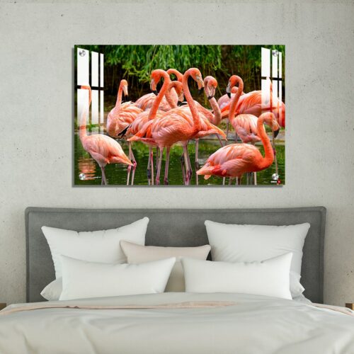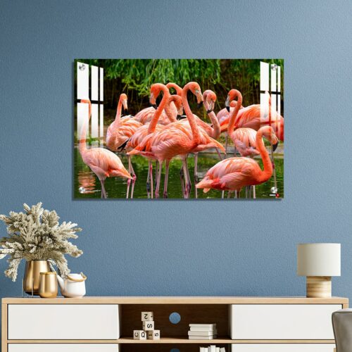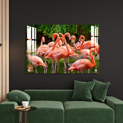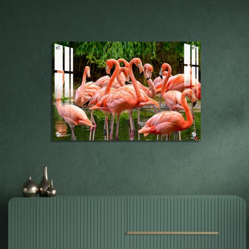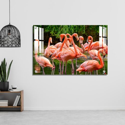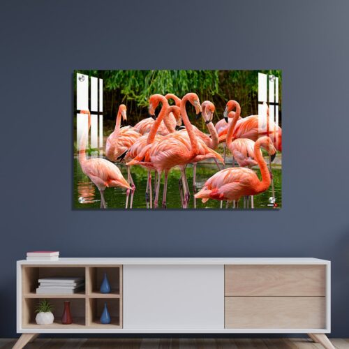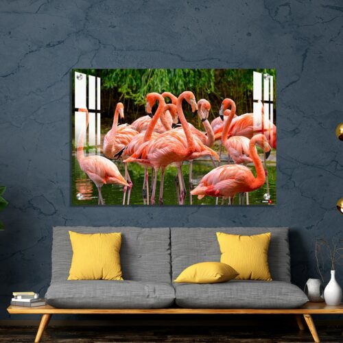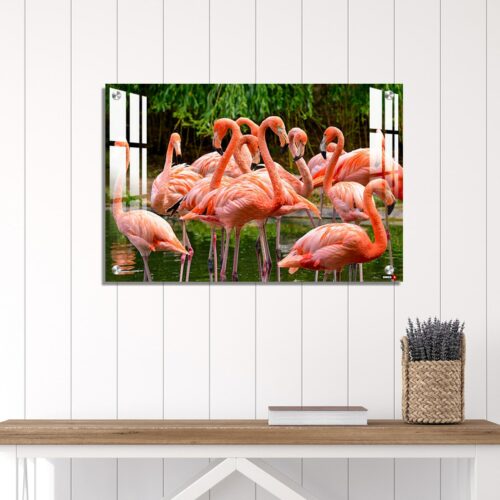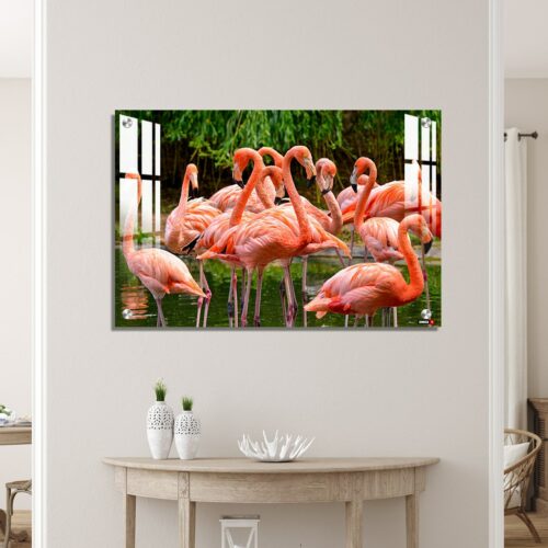 Acrylic Wall Decor – Group of Red Flamingos