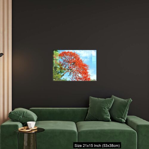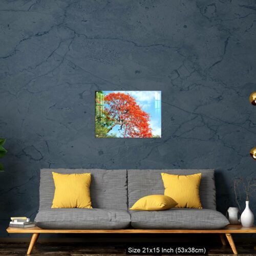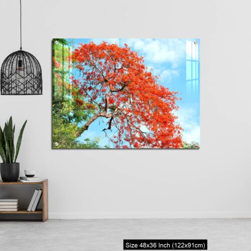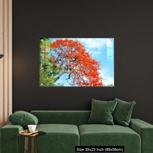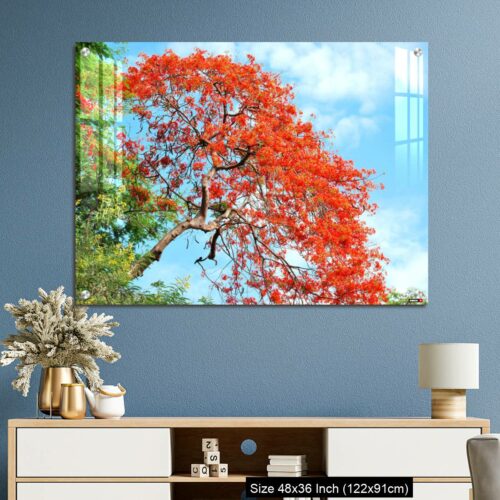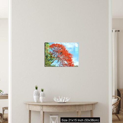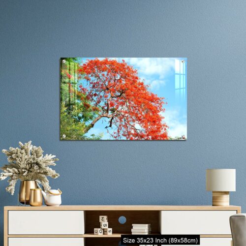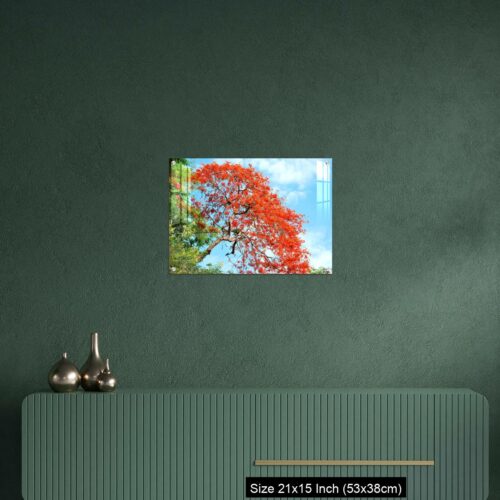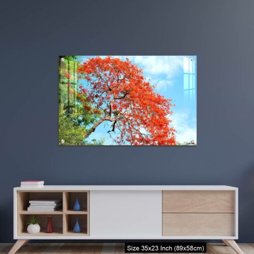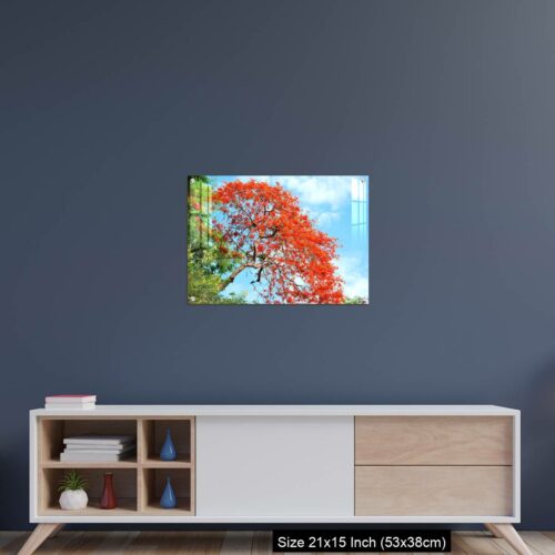 OMGs® Acrylic Wall Decor – Gul Mohar tree in full bloom against a bright blue tropical sky in Mumbai, India.
