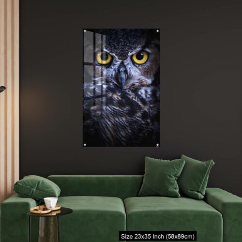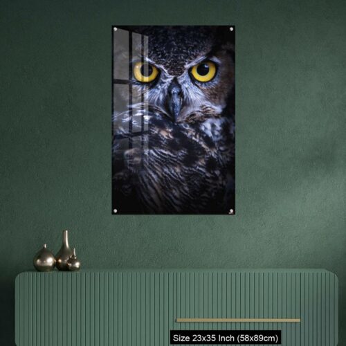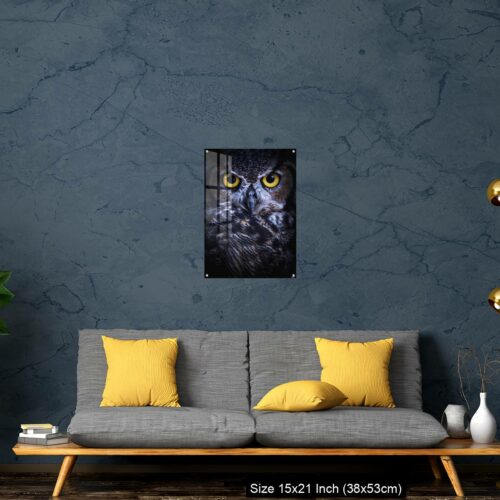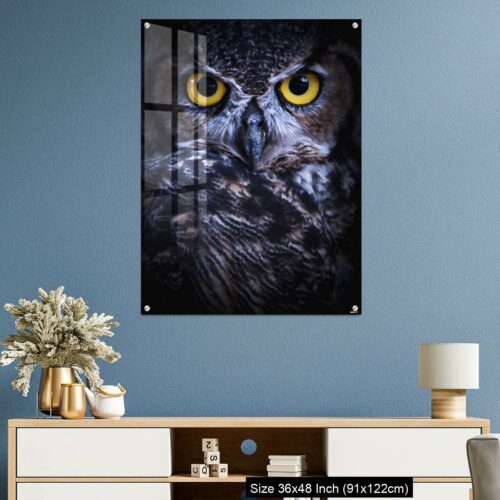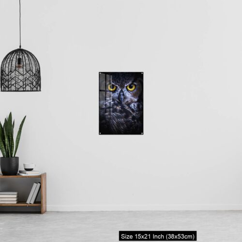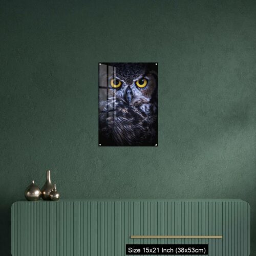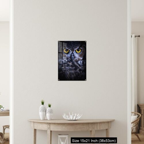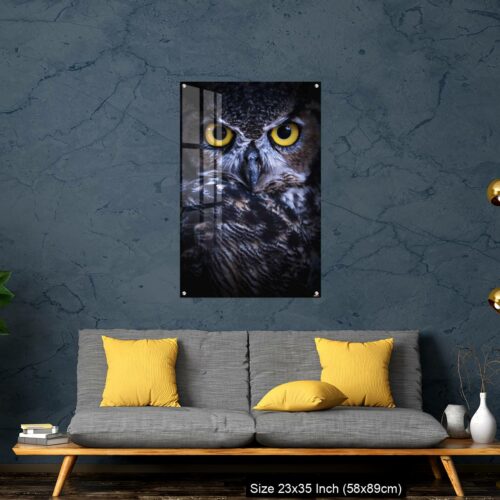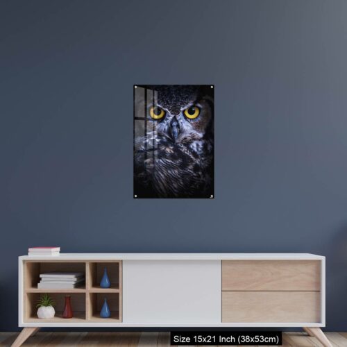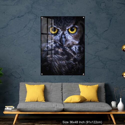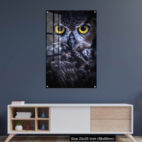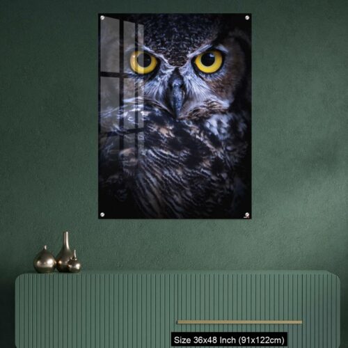 Acrylic Wall Decor – Intense Eye Contact from a Great-Horned Owl