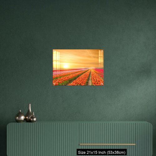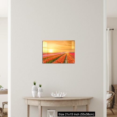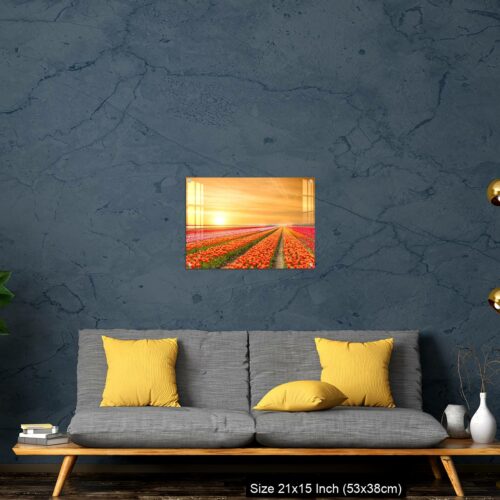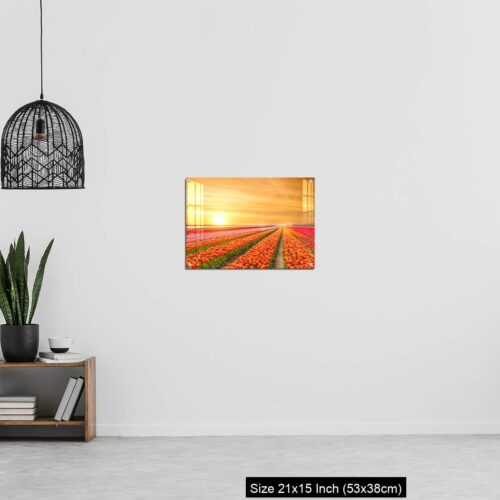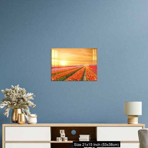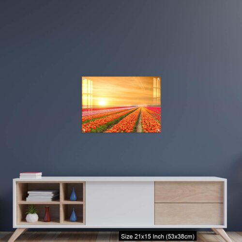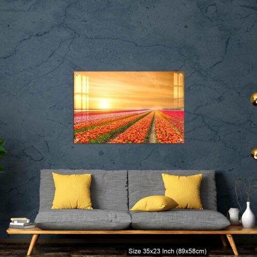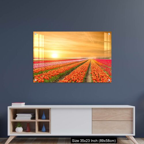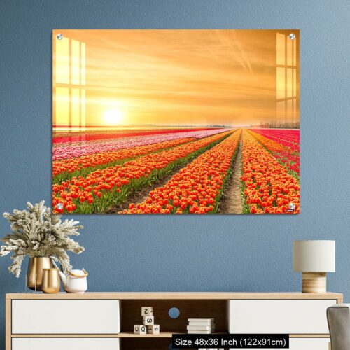 Acrylic Wall Decor – Landscape of Netherlands tulips with sunlight in Netherlands.