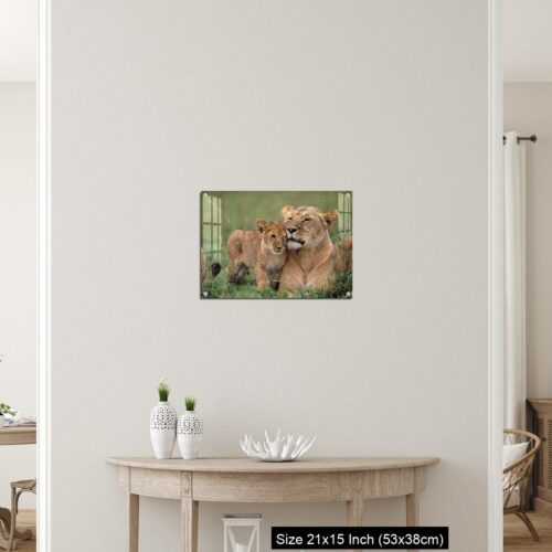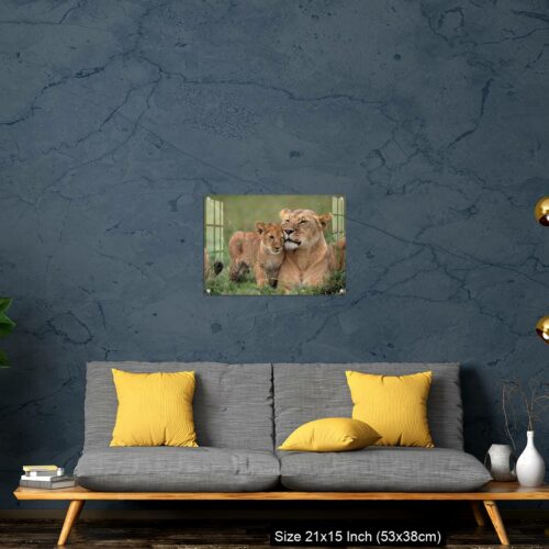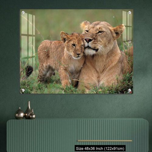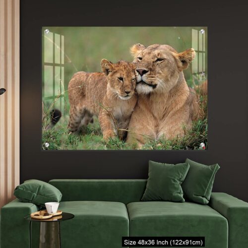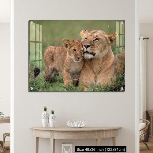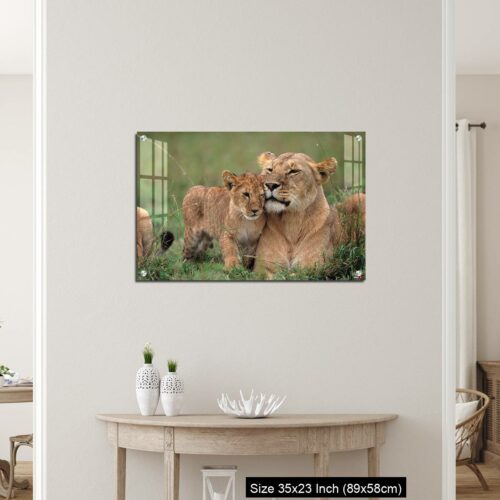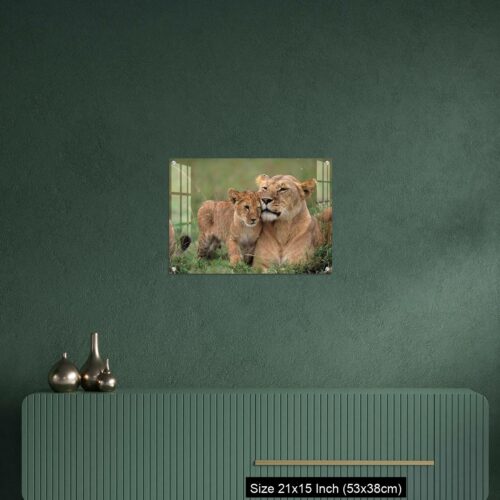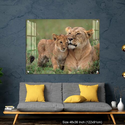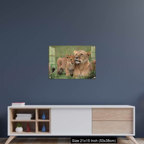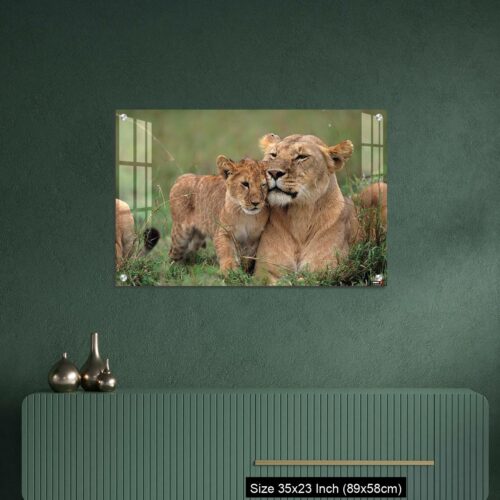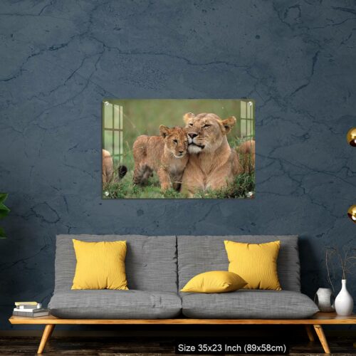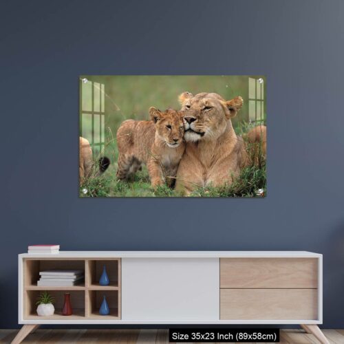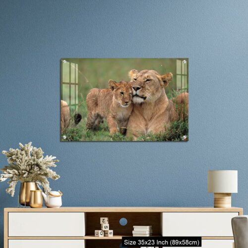 Acrylic Wall Decor – Lioness (Panthera leo) with cubs lying on grass, Kenya