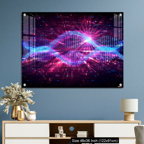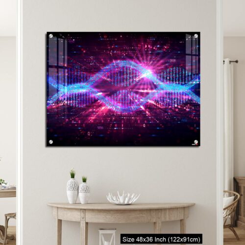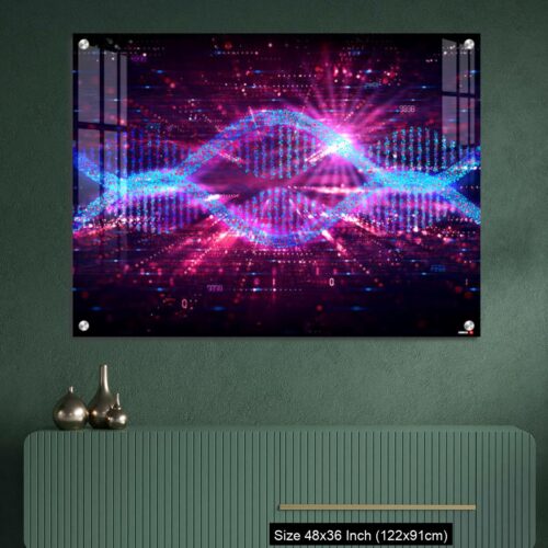 Acrylic Wall Decor – mRNA Technology – Messenger RNA – Two Strands of mRNA on Abstract Technology Background
