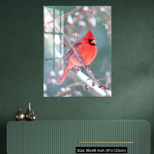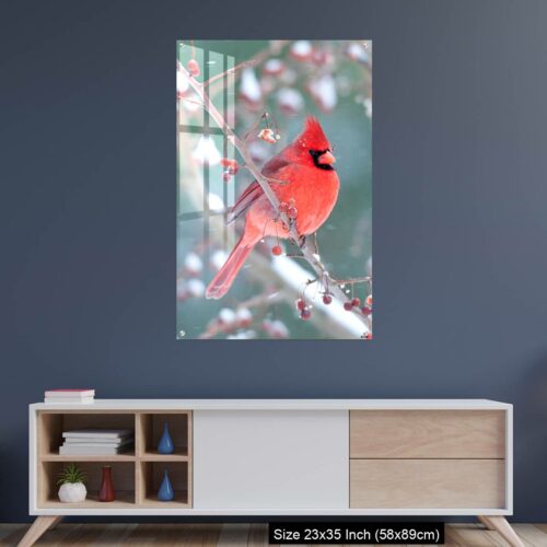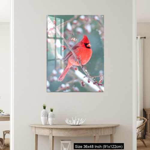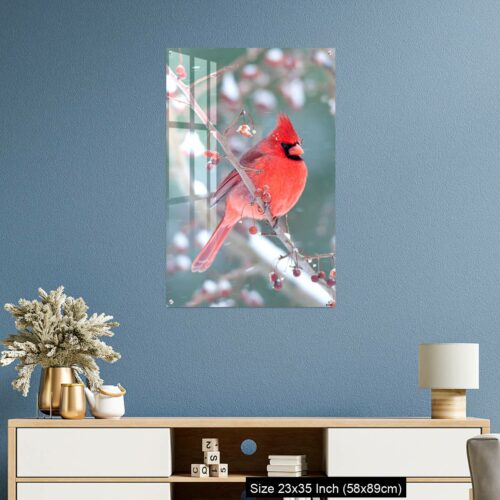 Acrylic Wall Decor – Northern Cardinal and light snow in winter