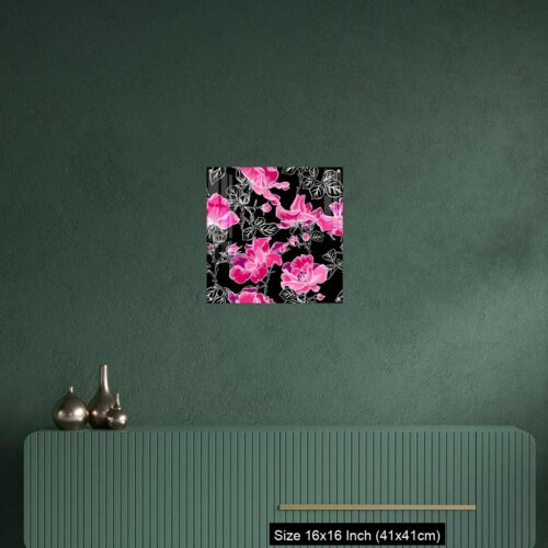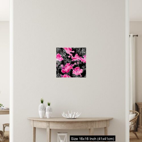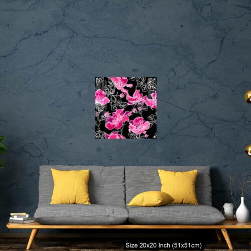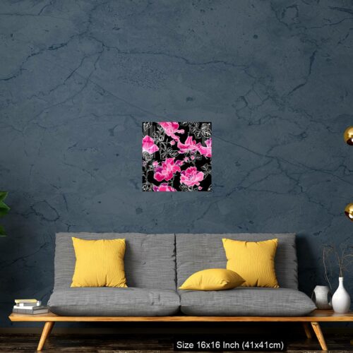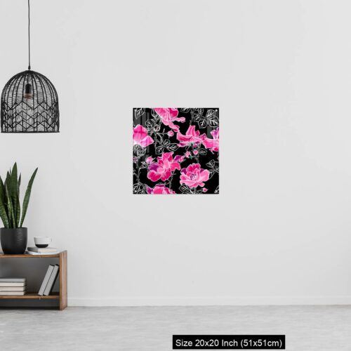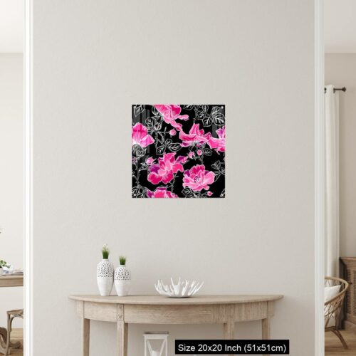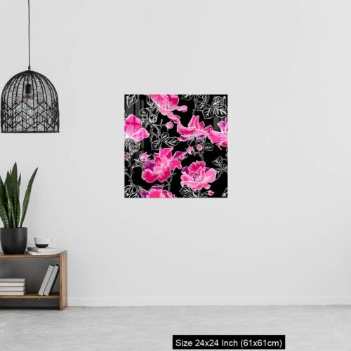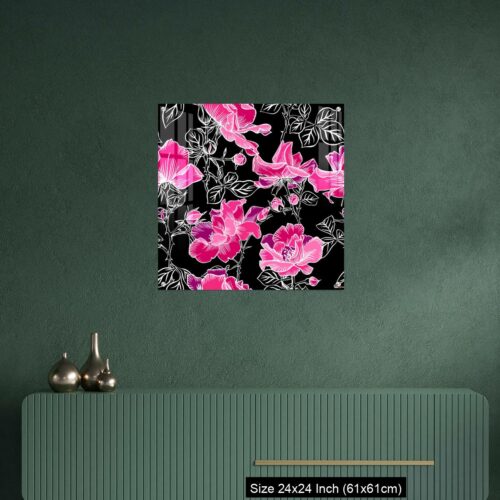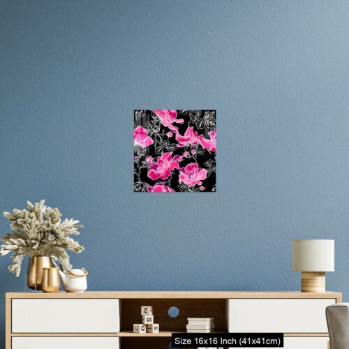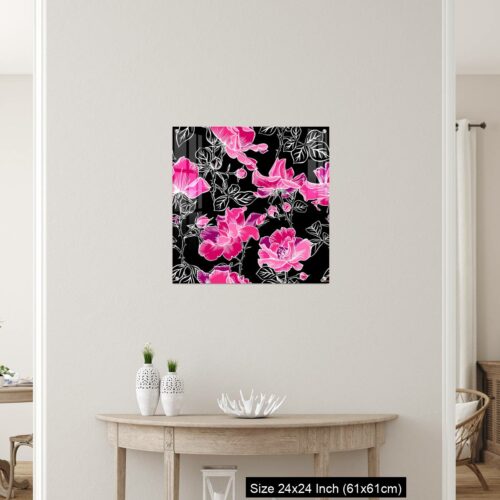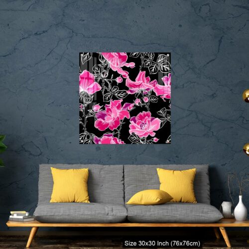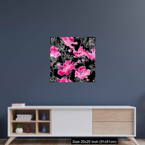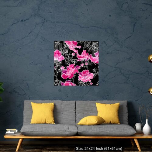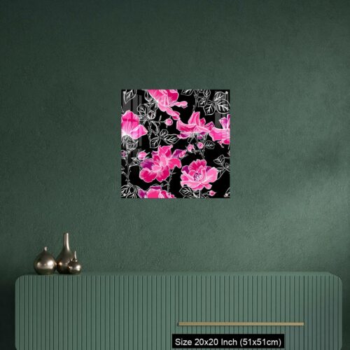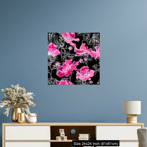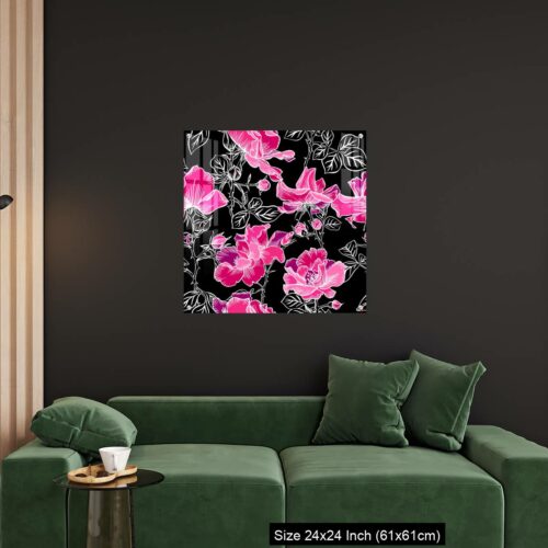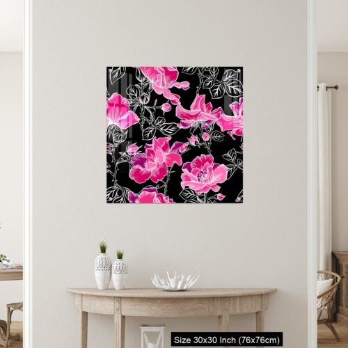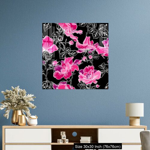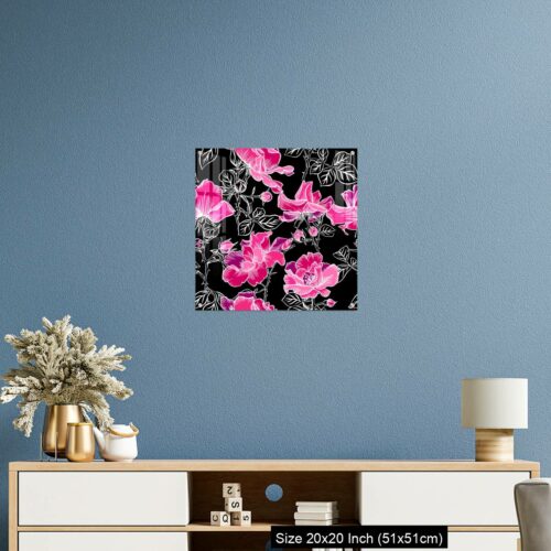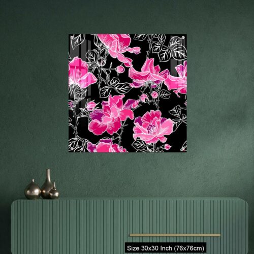 Acrylic Wall Decor – Seamless pattern with blossom red large roses petals buds and leaves.