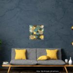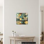 Seamless vector pattern with golden lotus leaves and flowers. Line art style.