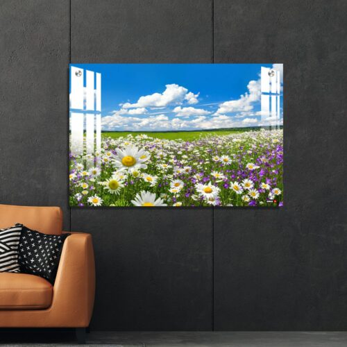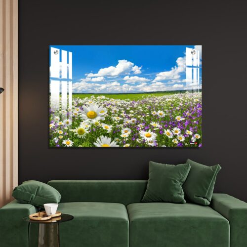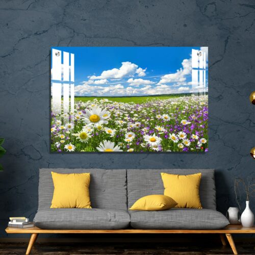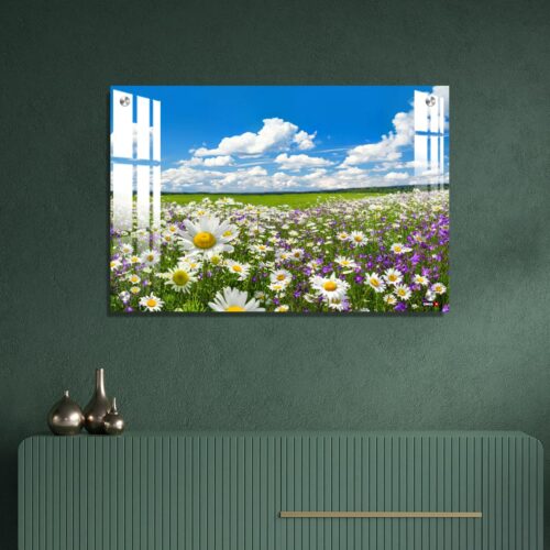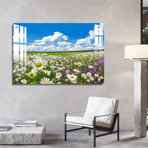 Acrylic Wall Decor – Spring Landscape With Flowering Flowers on Meadow