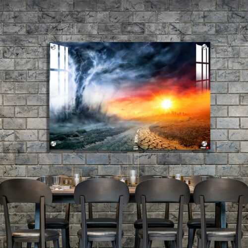Acrylic Wall Decor – Tornado In Stormy Landscape – Climate Change And Natural Disaster Concept