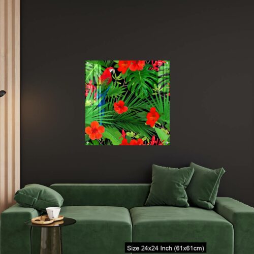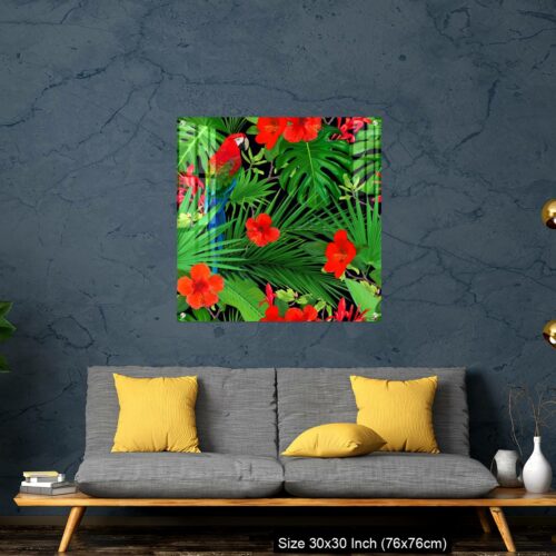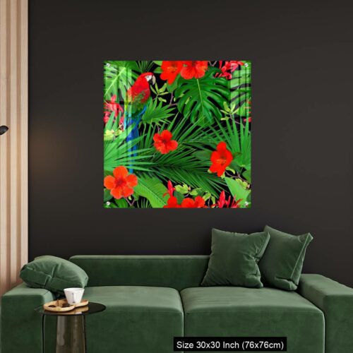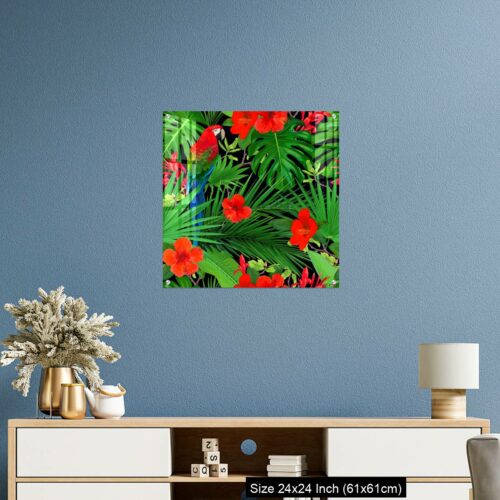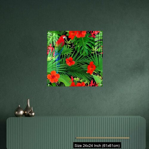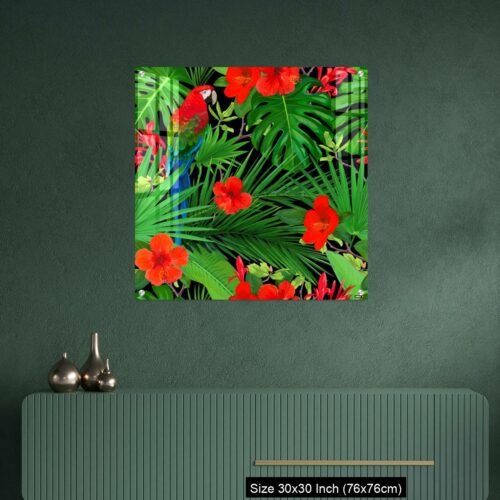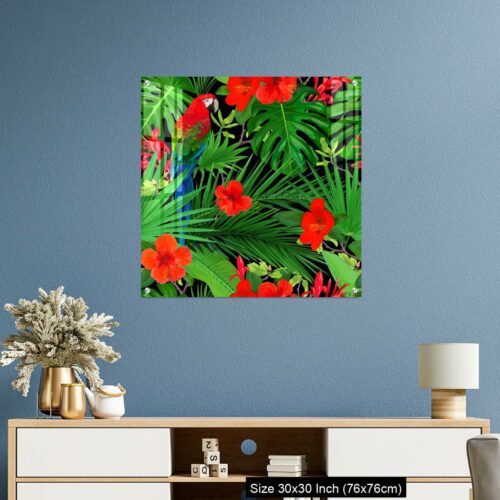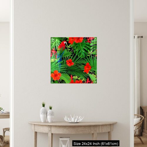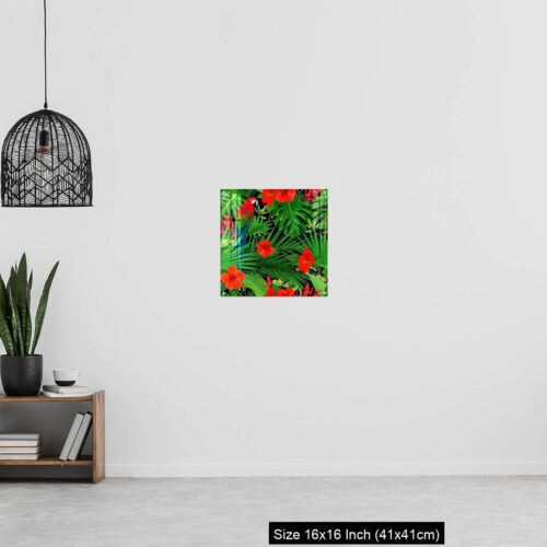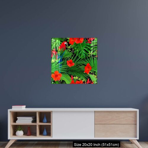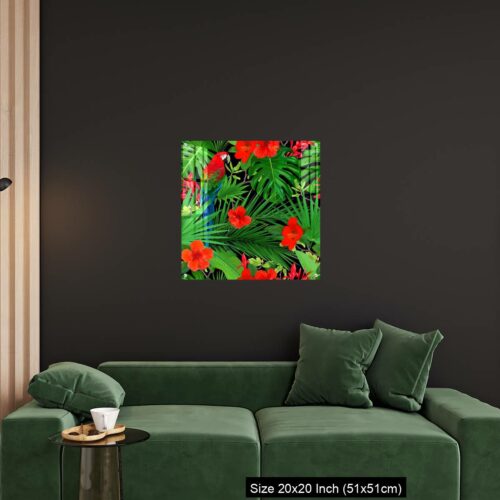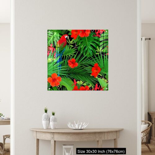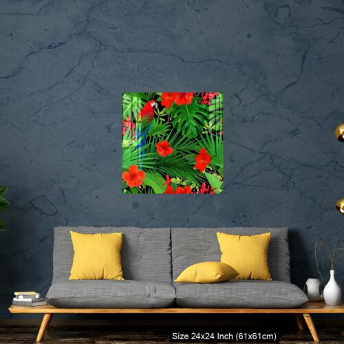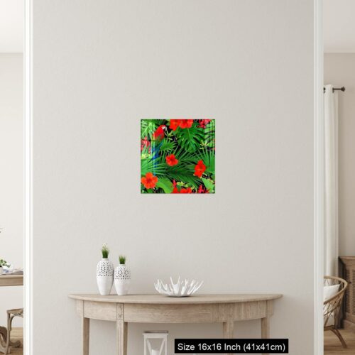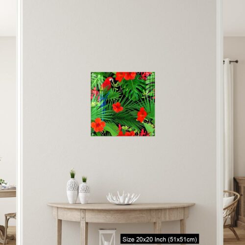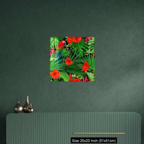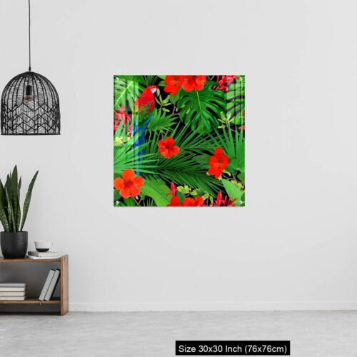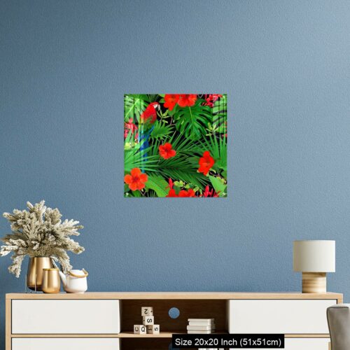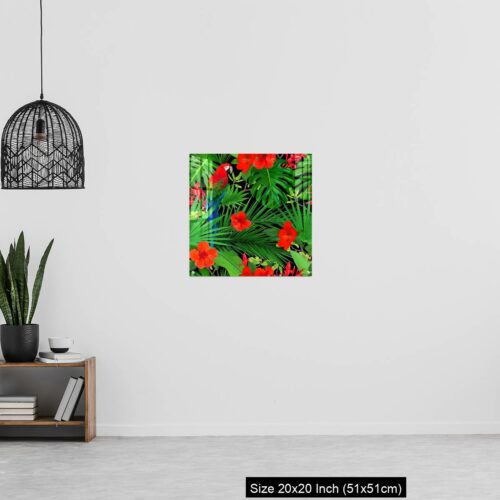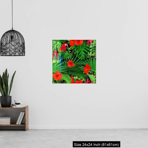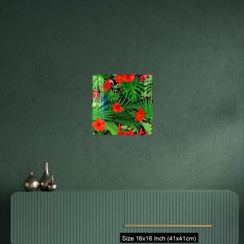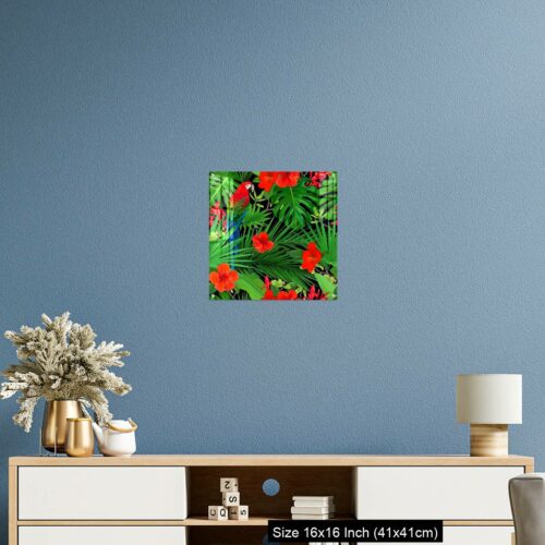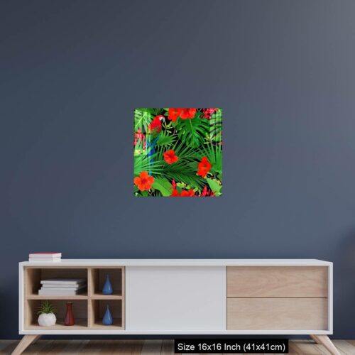 Acrylic Wall Decor – Tropical seamless pattern with red flowers